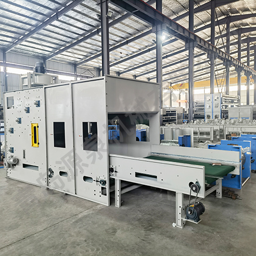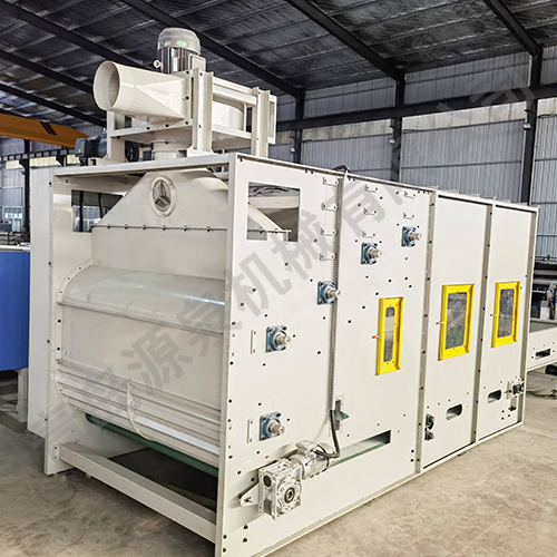 將開(kāi)包后稱(chēng)量分配好的纖維,喂入平簾輸送至主體混倉(cāng)內(nèi),再由5道開(kāi)松輥高速開(kāi)松混合后,經(jīng)輸棉風(fēng)機(jī)以適量的風(fēng)量輸送纖維原料供后道工作使用。本機(jī)由雙電機(jī)控制五道開(kāi)松輥,轉(zhuǎn)速、運(yùn)行更加穩(wěn)定。