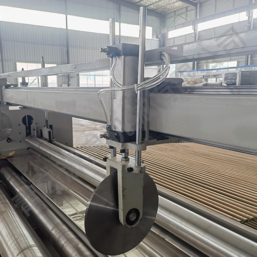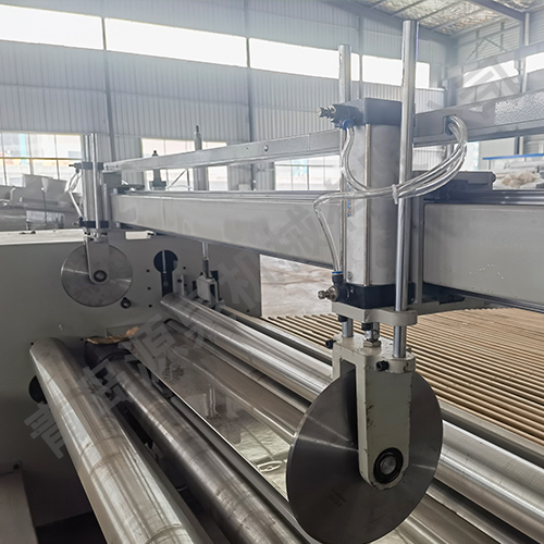 該機(jī)器采用飛刀切割或電熱絲方式橫切,并配有四把縱切切刀,其主要用于將噴膠棉、無(wú)膠棉、硬質(zhì)棉等進(jìn)行切邊、收卷并裁剪成符合要求的尺寸規(guī)格。本機(jī)具有計(jì)數(shù)功能、跟蹤橫切功能。